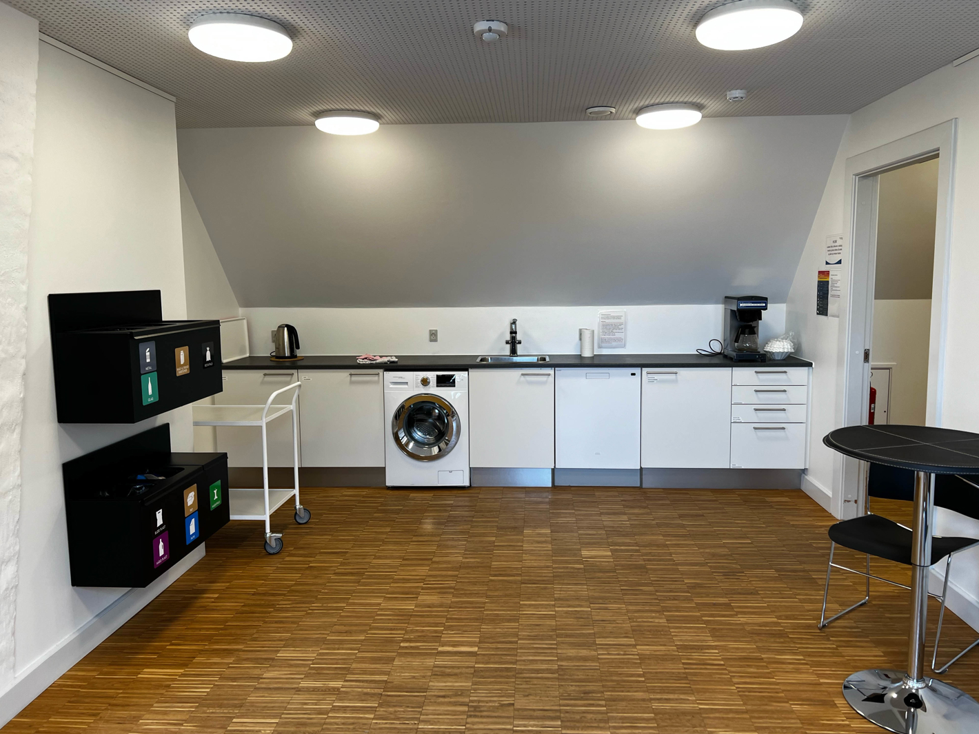 På 1. sal er der et lille køkken der kan bruges af foreninger og interessegrupper der har booket lokaler.